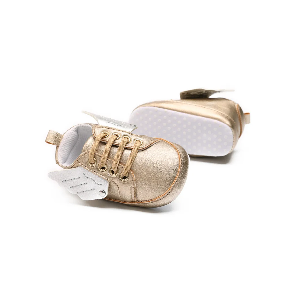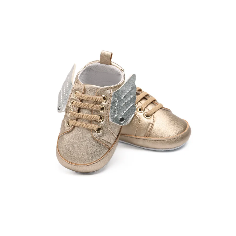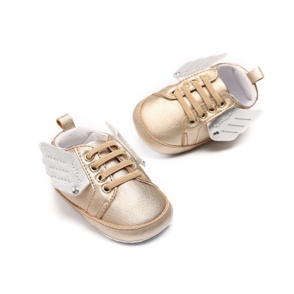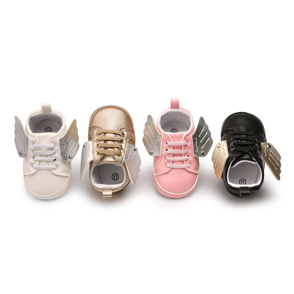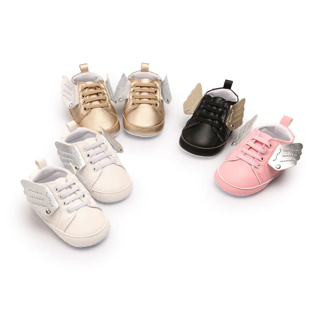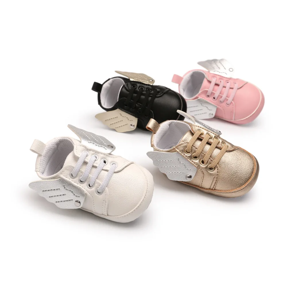 0-18M Angel Wings Baby Girls Boys Sneakers Shoes Pu Leather Crib Anti Slip Casual Handsome First Walker For Infant Toddler