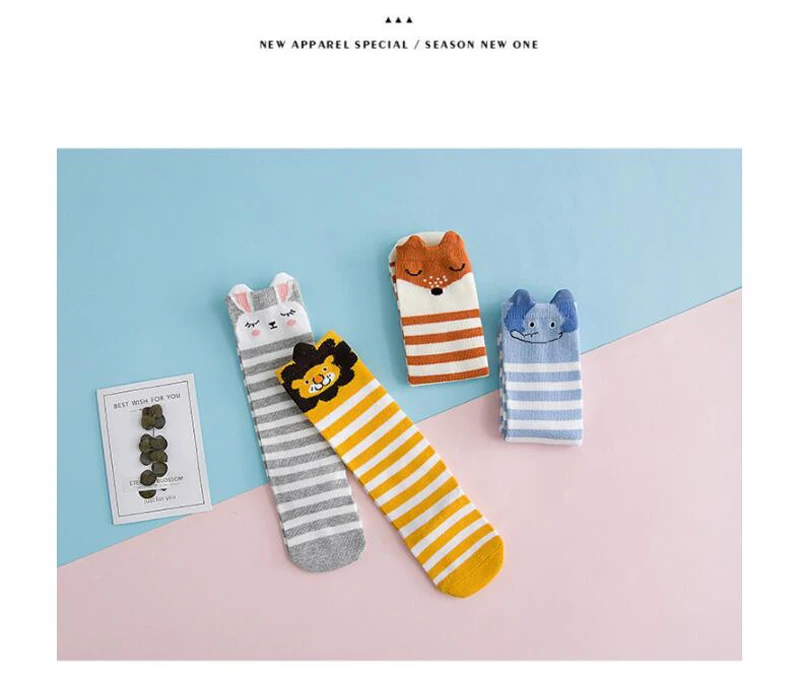 0-3Y Newborn Sock Baby Cute Animal Girls Boys Keen High Socks Autumn Winter Striped Three-dimensional Elephant Lion Sock Unisex