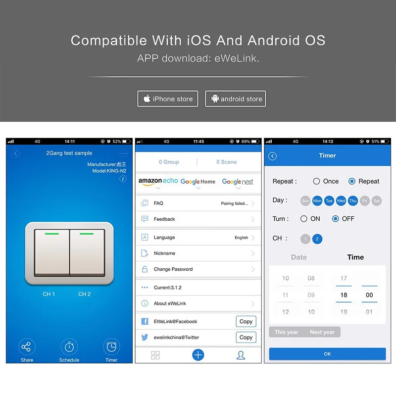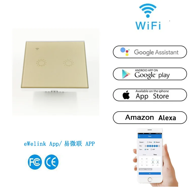 1/2/3 gang EU UK Wifi Remote Touch wall Switch Wireless Alexa APP control timer switch Intelligent Home