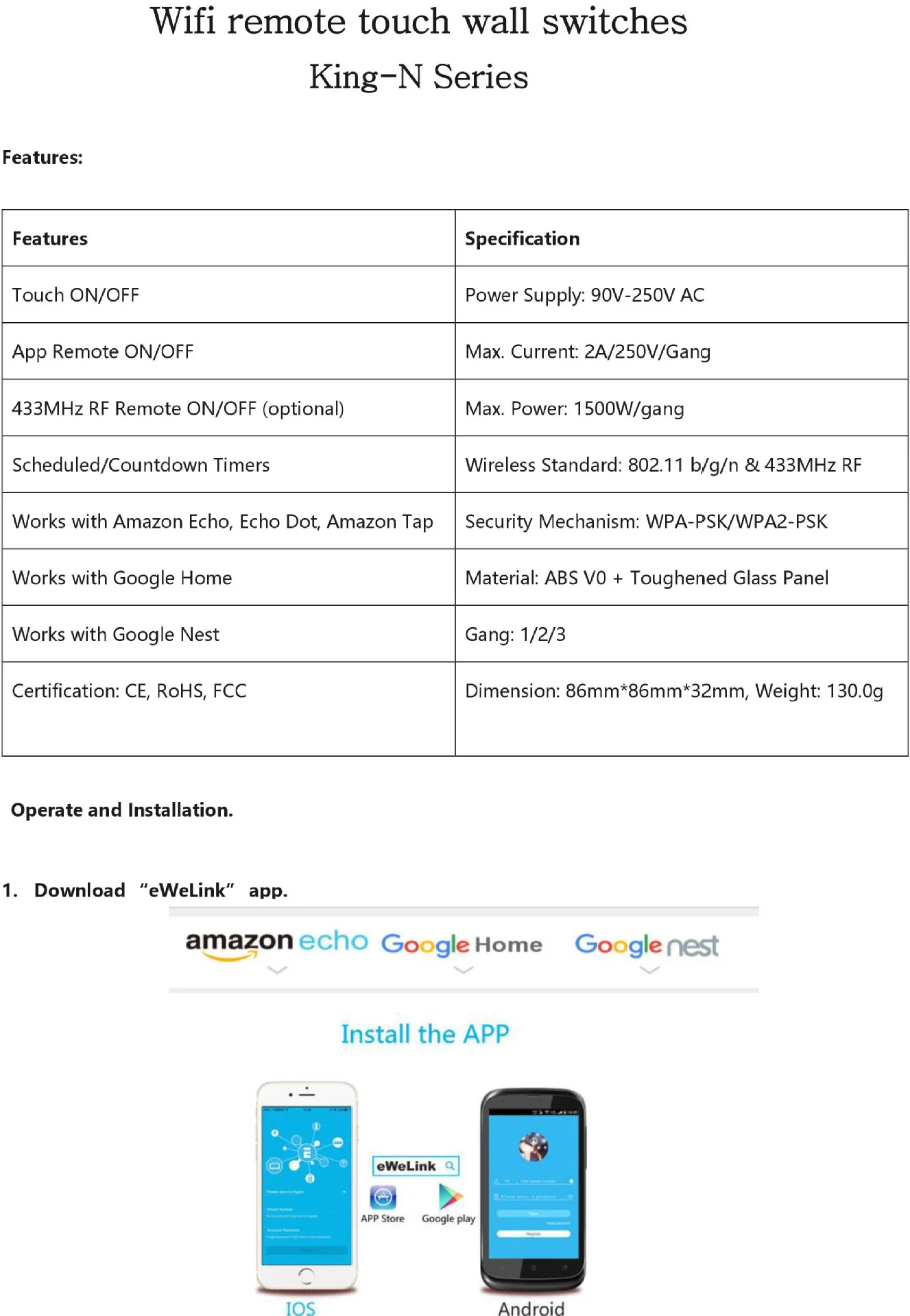 Name: WIFI touch remote control switch