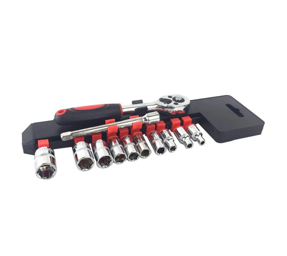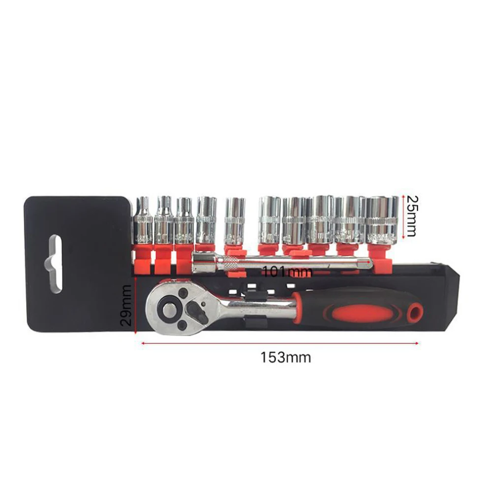 Package Contents: 1 x Ratchet Wrench, 10 x Common Sockets, 1 x Extension Rod