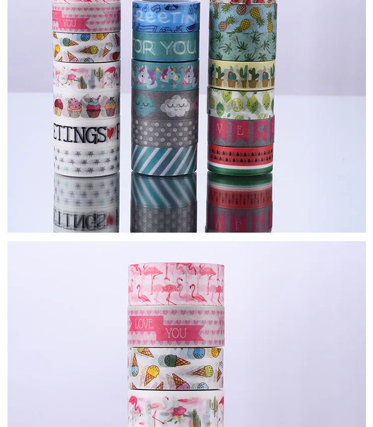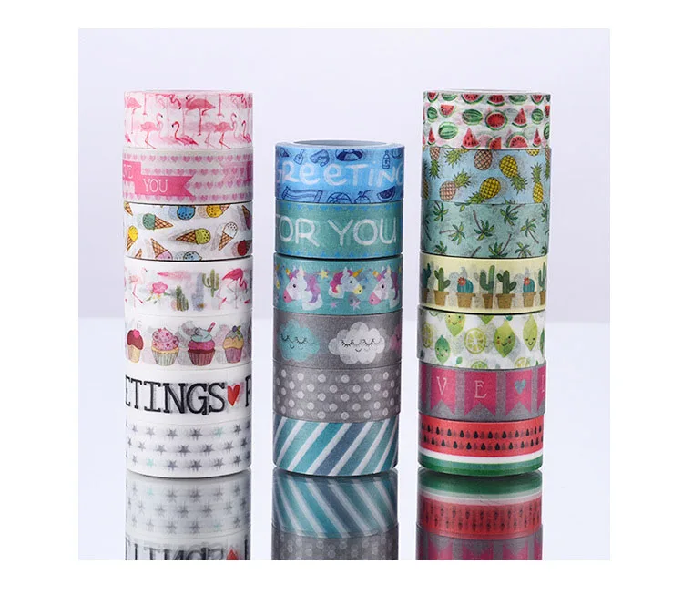 Kawaii Watermelon Pineapple Cute Pink Flamingos Cartoon Unicorn Masking Washi Tape Decorative Adhesive Tape Diy Scrapbooking