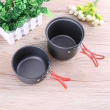 2pcs Outdoor Camping Non-stick Pots Portable Hiking Picnic Pans Bowls Cooking Set Cookware