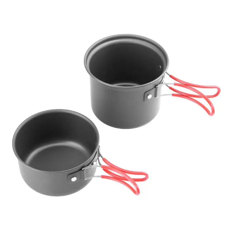 2pcs Outdoor Camping Non-stick Pots Portable Hiking Picnic Pans Bowls Cooking Set Cookware