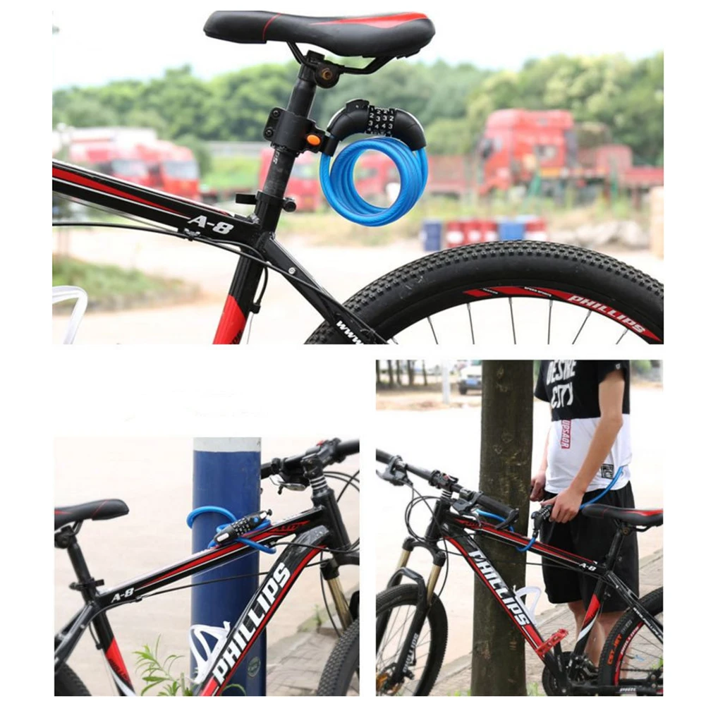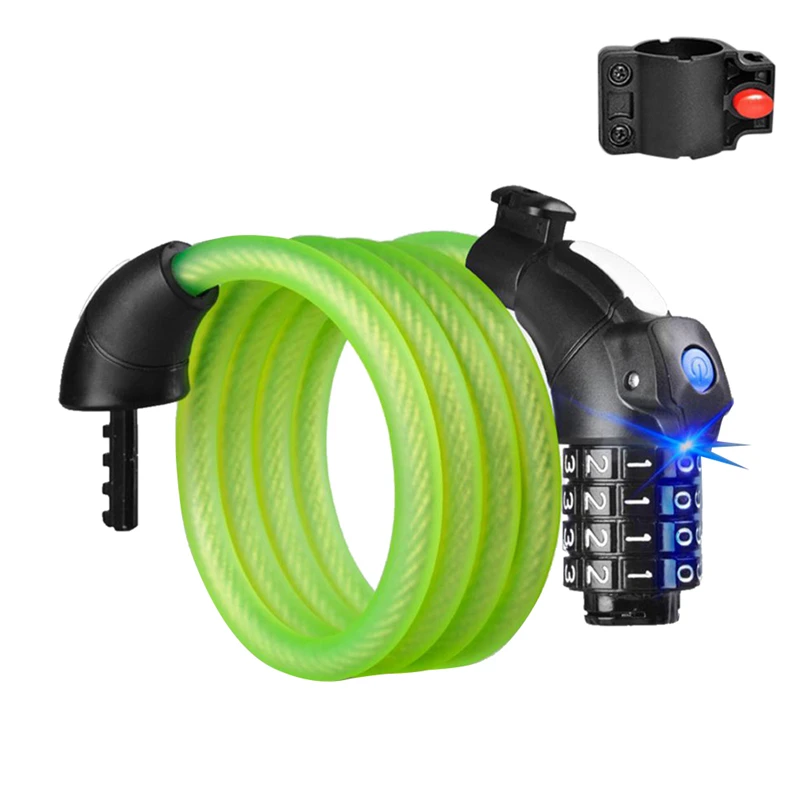 1.5m LED Anti Theft Bike Lock Steel Wire Safe Bicycle Cable Lock MTB Mountain Road Bicycle
