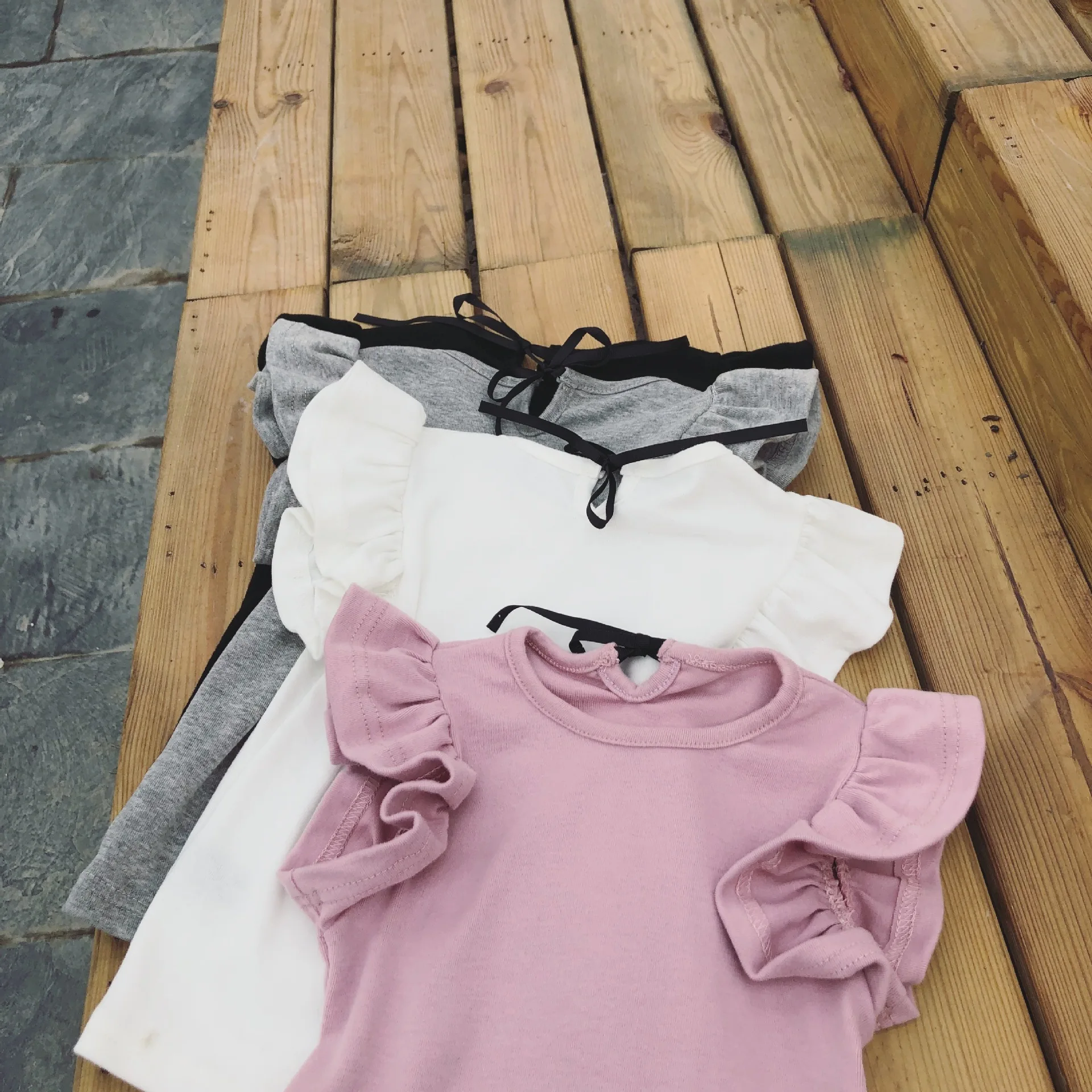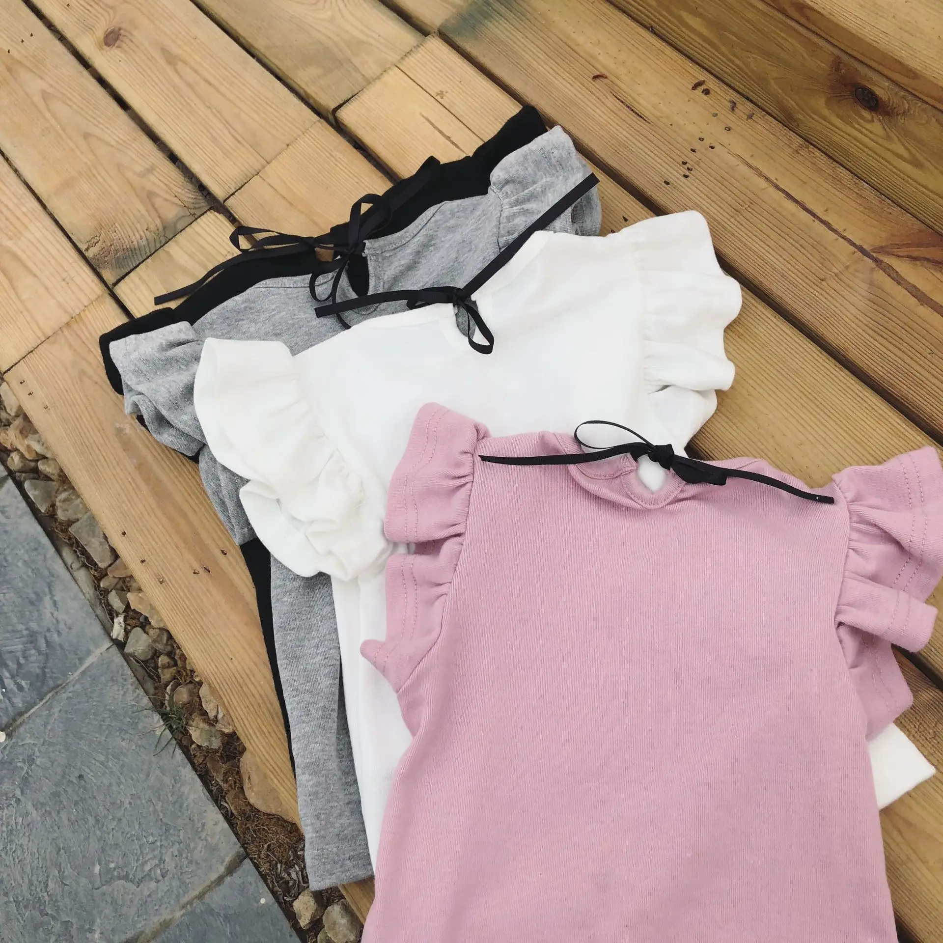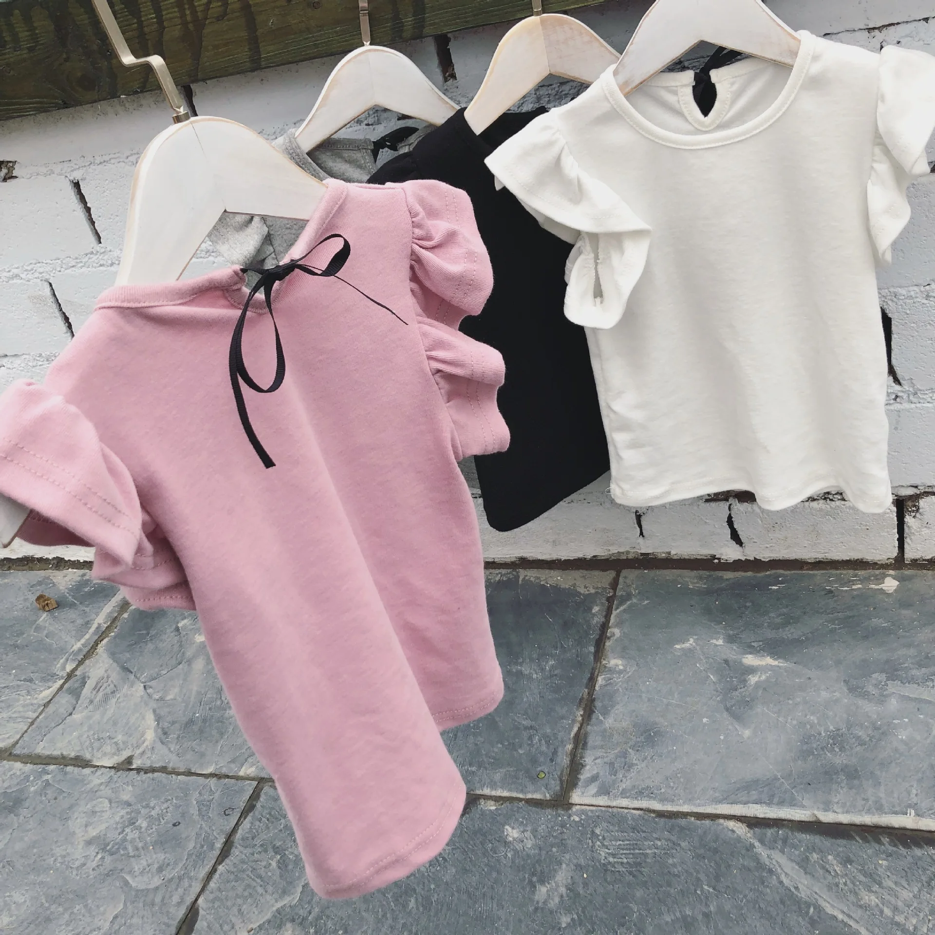 1-6 Yrs baby Girl t-shirt Toddler Girls Ruffle tee shirts for children girl blouse cotton t shirt kids summer Bowknot clothes