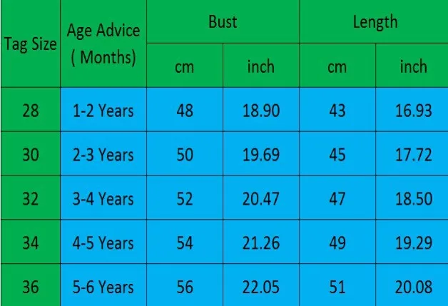 28(1-2 years) 30(2-3years) 32(3-4years) 34(4-5years) 36(5-6years)