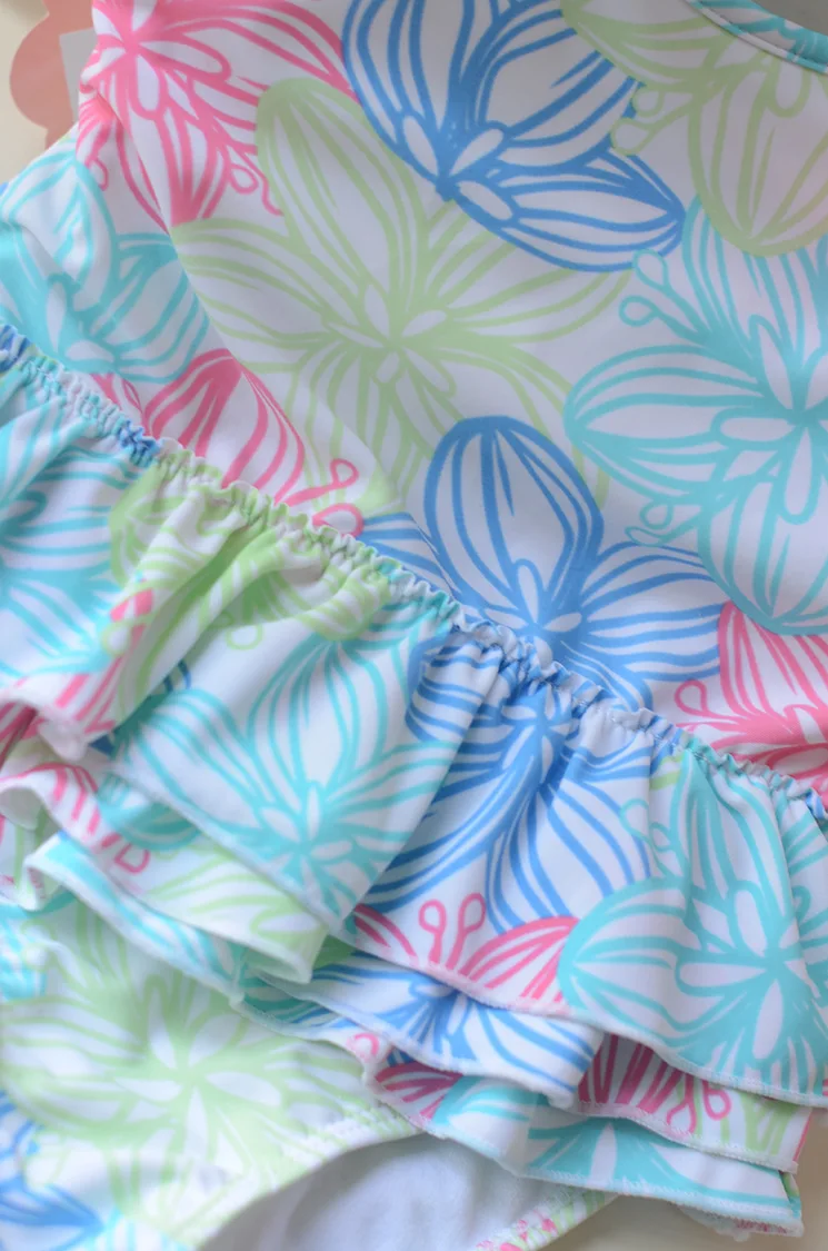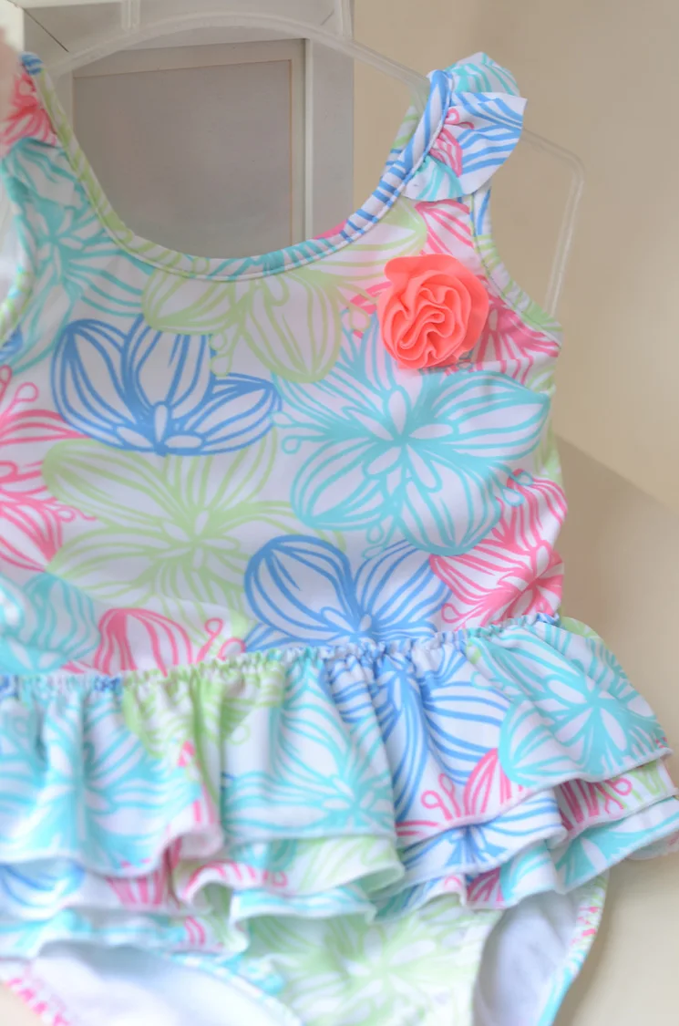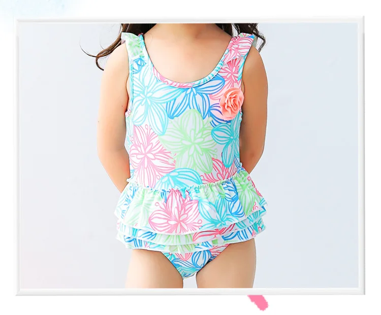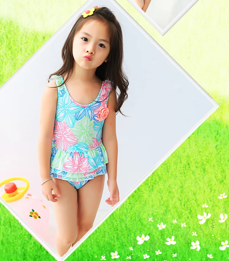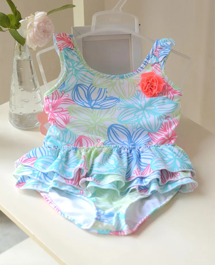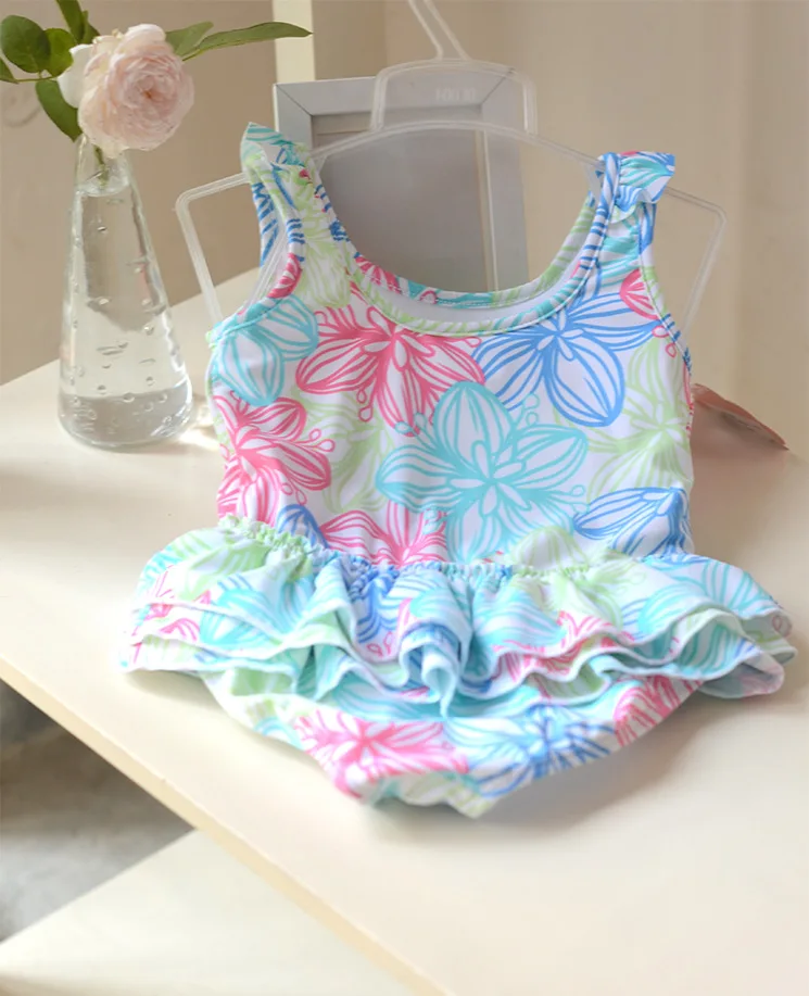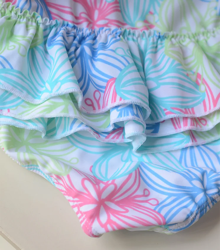 1-8 Years Baby Girl Swimwear Toddler One Pieces Suits Floral Nylon Swimsuit Kids Bathing Suit Children Triangle Swim Clothing