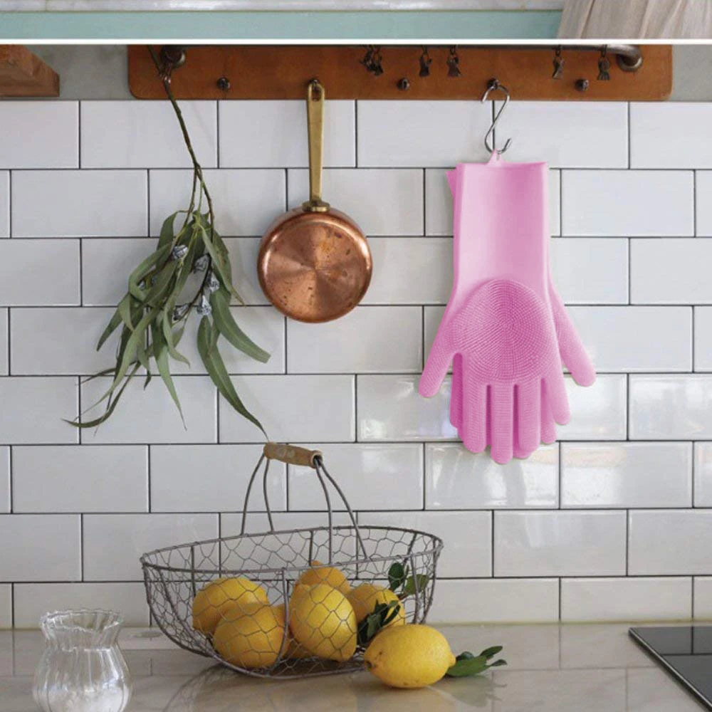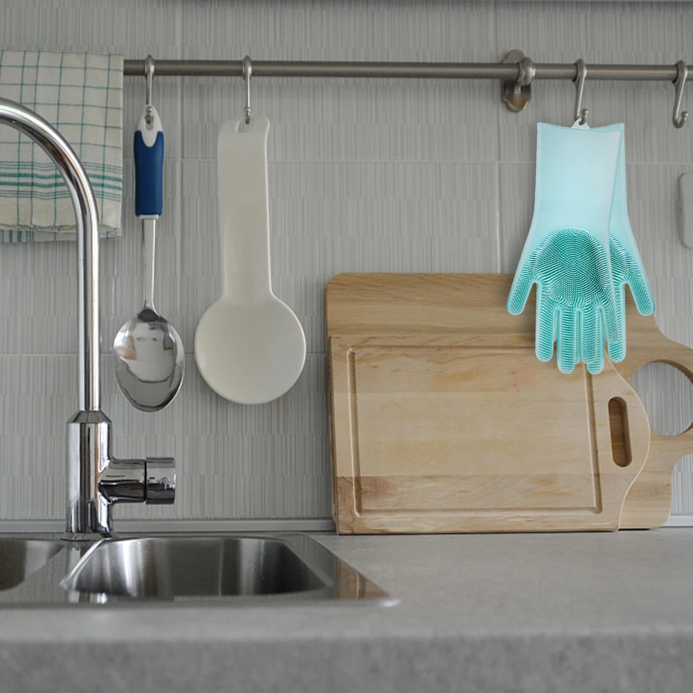 1 Pair Magic Food Grade Silicone Washing Dishes Gloves Scrubbing Gloves Sponge Dishwashing Dish Gloves Guantes Para Lavar Platos