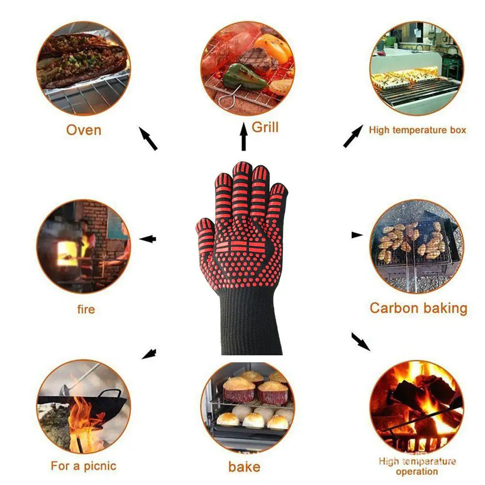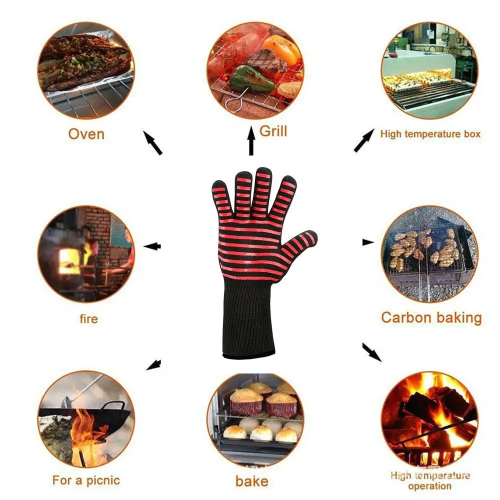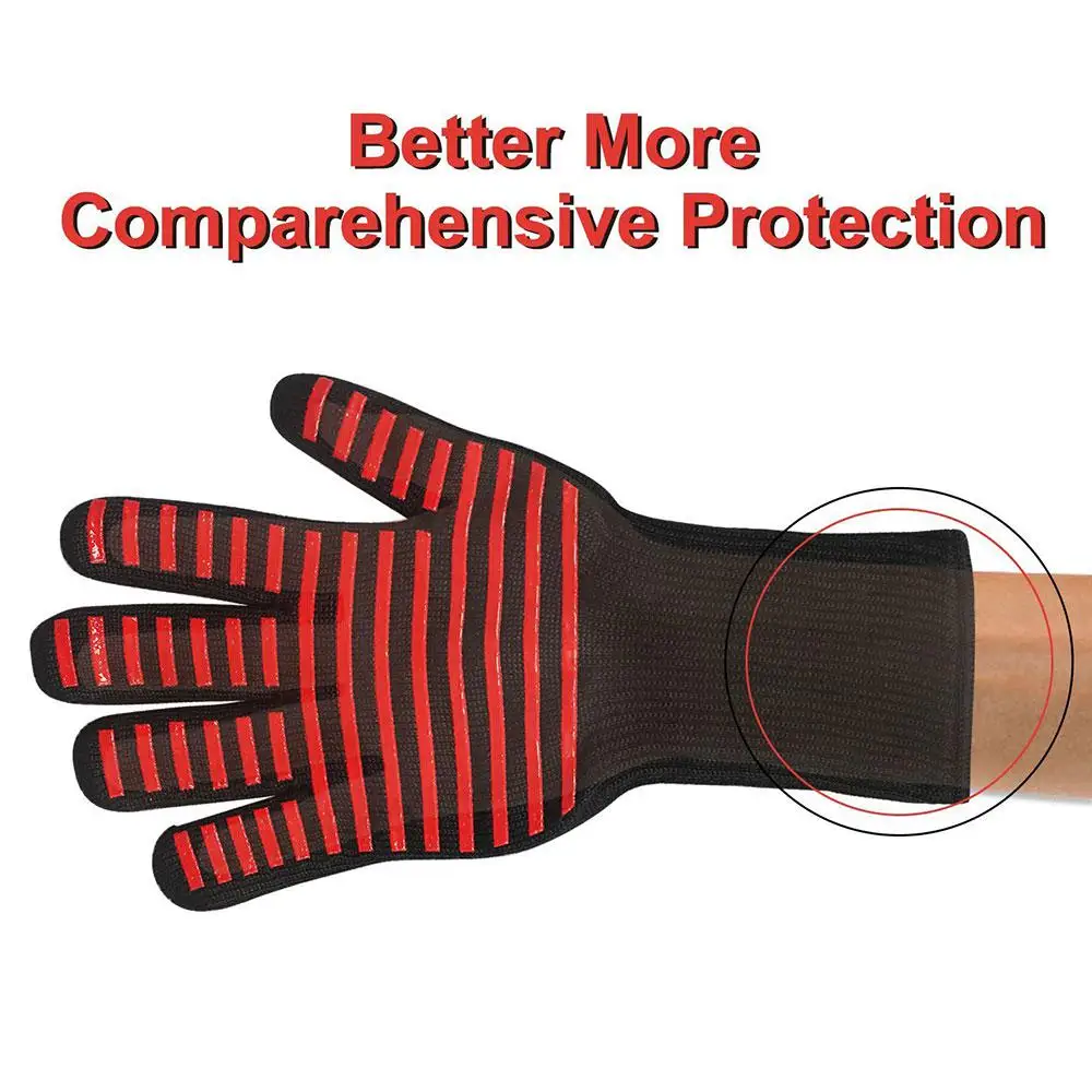 1 Pair Oven Mitts Gloves BBQ Grilling Cooking Gloves 932 °F Extreme Heat Resistant Gloves Long For Extra Forearm Protection BBQ Kitchen Gloves