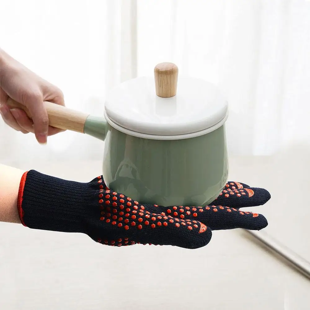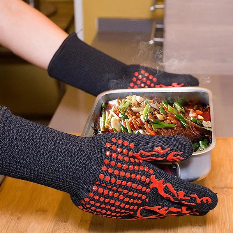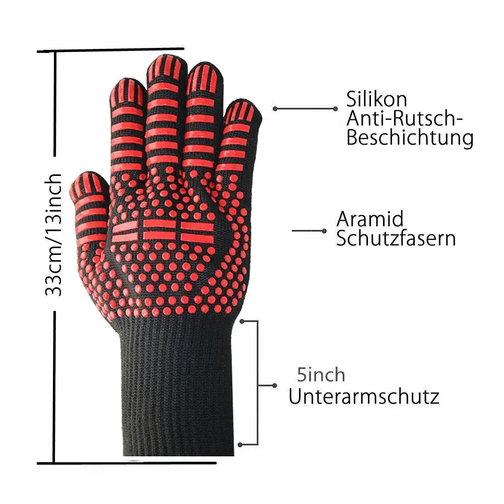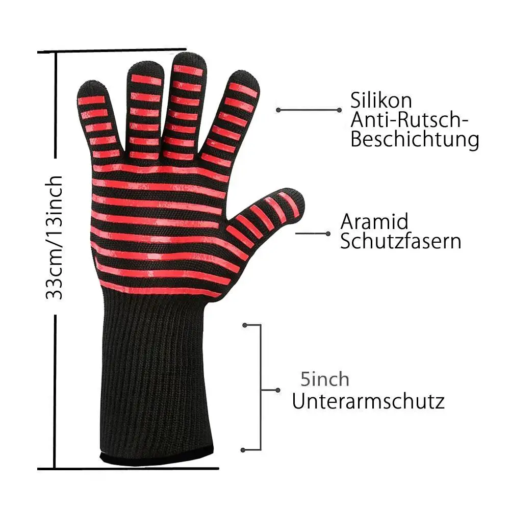 1 Pair Oven Mitts Gloves BBQ Grilling Cooking Gloves 932 °F Extreme Heat Resistant Gloves Long For Extra Forearm Protection BBQ Kitchen Gloves