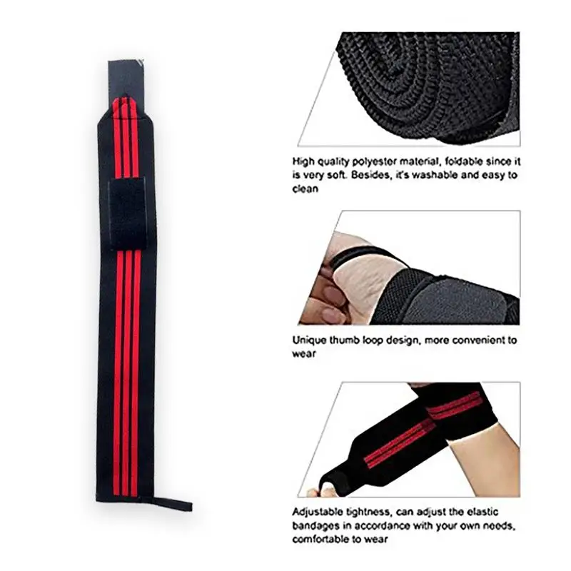 1 Pair Sports Wrist Band Bracers Support Gym Strap Carpal Tunnel Bandage High Elasticity Fitness Badminton Bracers 54.5CM Black