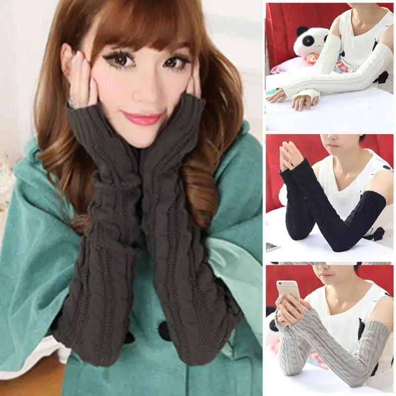 1 Pair Wholesale Women’s Hemp Flowers Fingerless Gloves Knitted Long Gloves Guanti invernali Women Winter Gloves
