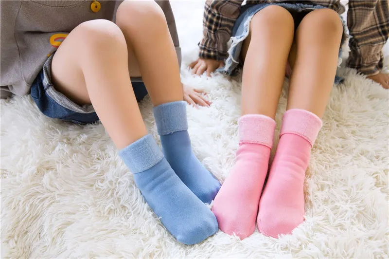 1 Pair Winter Plus Velvet Thickening Kids Thermal Warm Socks Children Toddler Baby Girls Boys Floor Socks For 4-10 Years Old