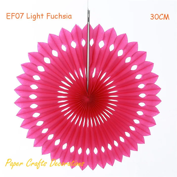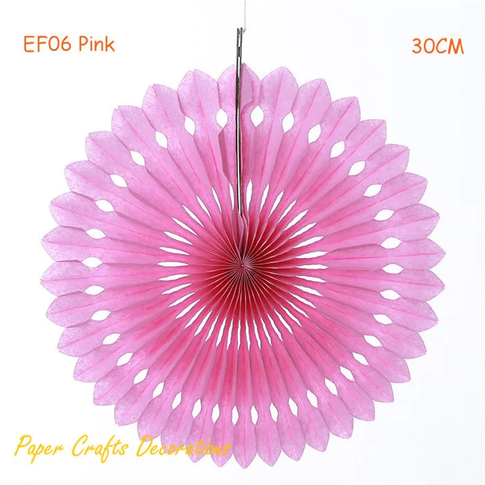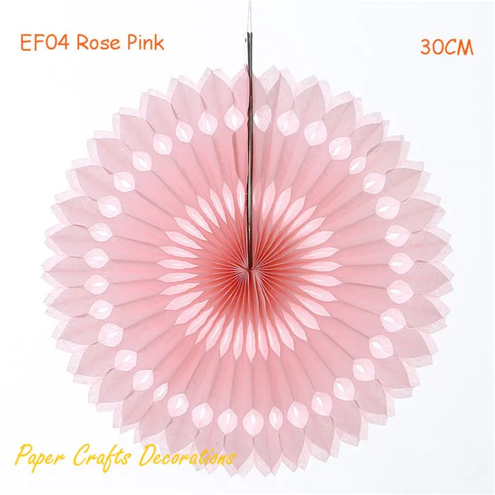 (1 pc) 12inch=30cm Rose Pink Foldable Eyelet Tissue Paper Fan Wheels Hanging Wedding Baby Shower Birthday Backdrop Decorations