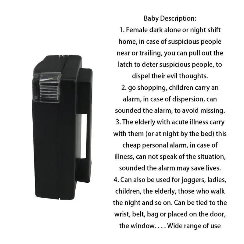 Reminder: As the alarm sound is larger, do not use in non-emergency situations, especially the elderly and children.