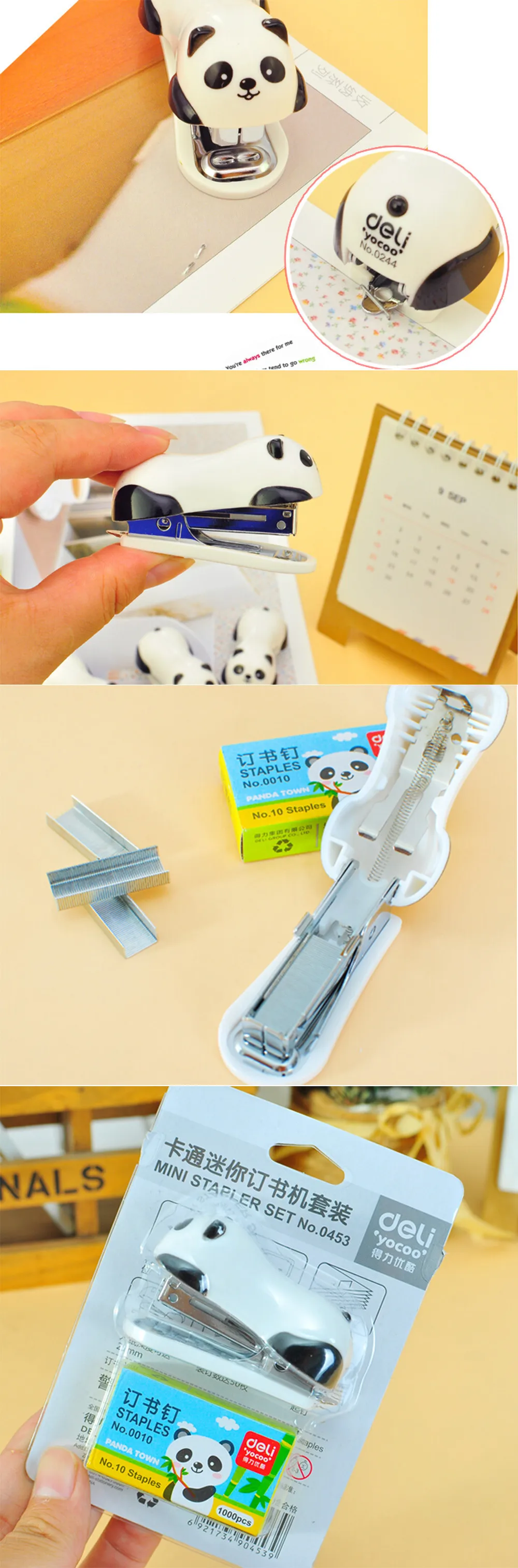 1 Pcs Mini Panda Stapler Set Cartoon Office School Supplies Staionery Paper Clip Binding Binder Book Sewer