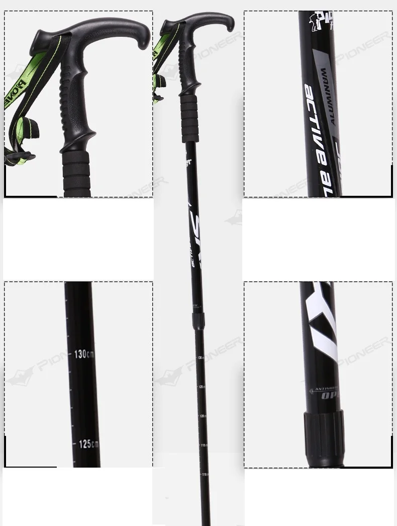 1 Pcs Pioneer Outdoor Walking Cane Telescopic Adjustable Walking Stick T Handle Trekking Hiking Pole for Men Women