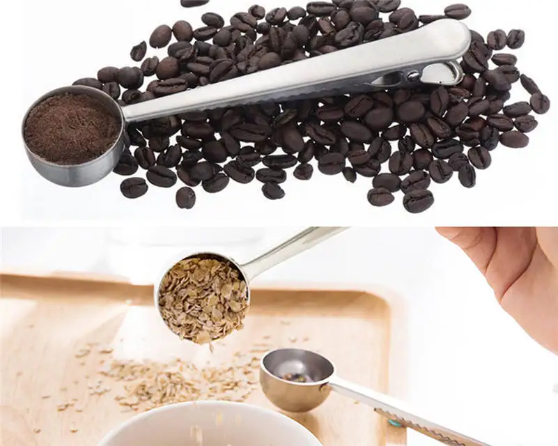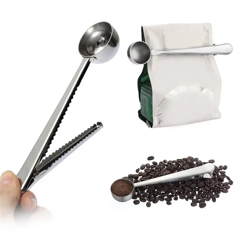 1-Piece Multifunction Stainless Steel Coffee Scoop With Clip Useful Home Kitchen Small Tools Professional Bar Tool