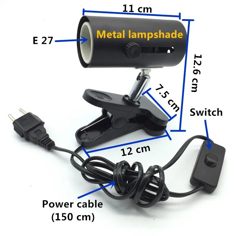 360-degree rotating lamp shade and strong clamp Heat resistant ceramic E27 lamp base It can be hanged up or clamped It can connect with ceramic heater or UVA UVB heater