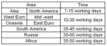 2.Most of our product is free by china post air mail ,blew is approximate delivery time of china post.