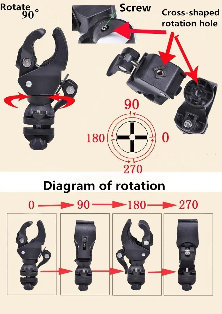 1 Set Headlight LED Torch Clip Mount Bicycle Light Holder Handlebar Bracket Road Bike Flashlight Front Holder 360 Rotation