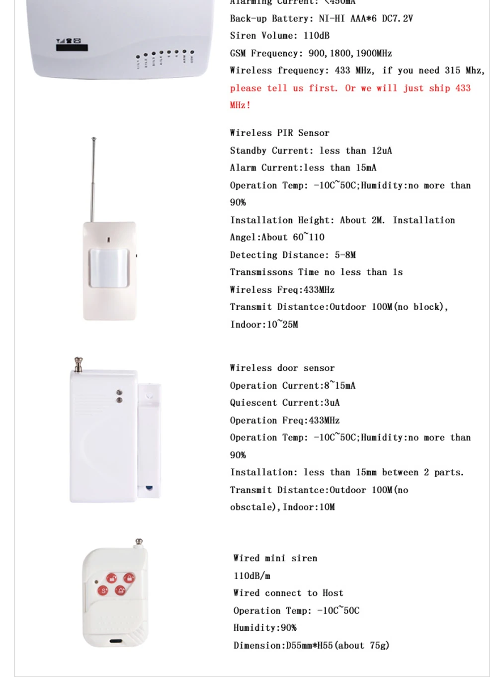 – Knowing a complete alarm system not only includes the common burglar alarm, but also includes fire alarm(smoke alarm), panic alarm, and environmental Alarm.