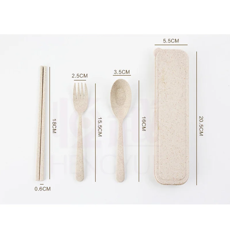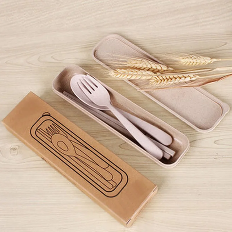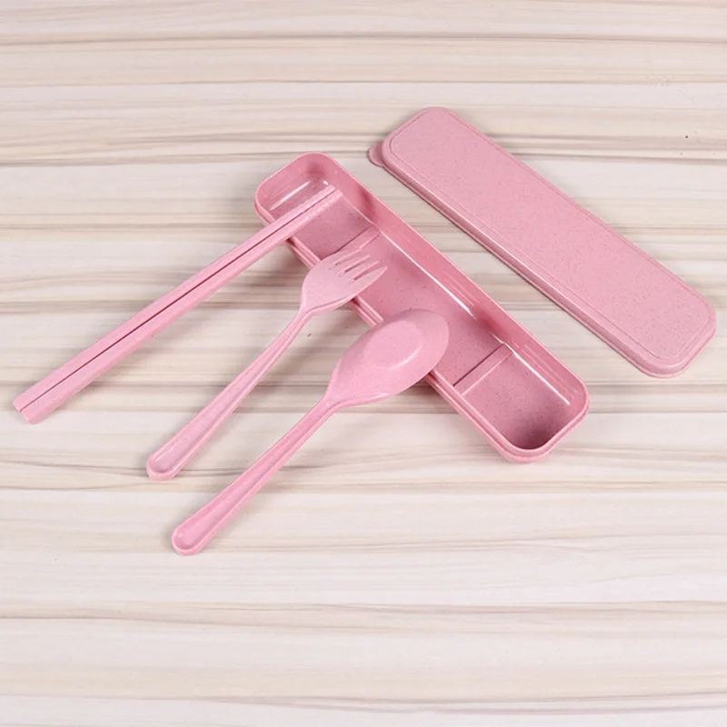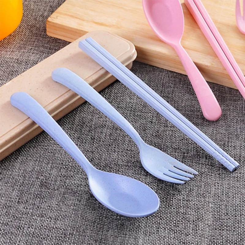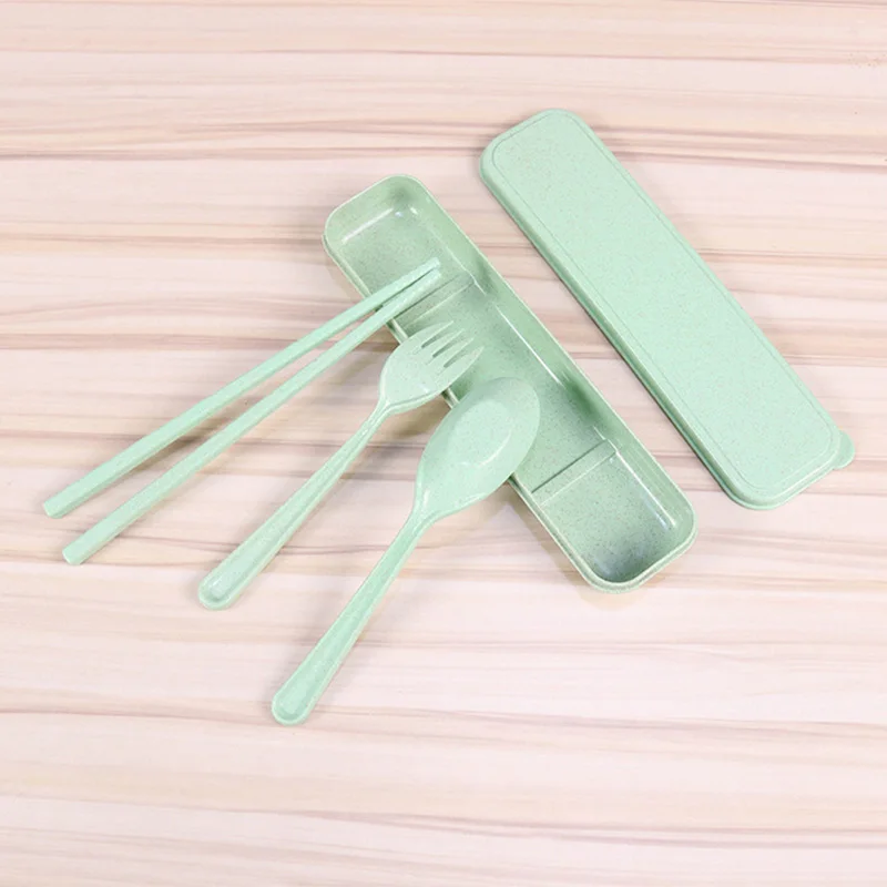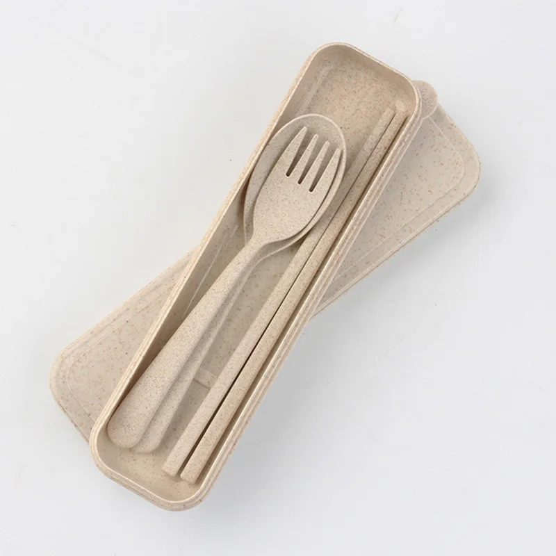 1 set Outdoor Tableware Eco-Friendly Wheat Straw Portable Cutlery Travel Fork Chopsticks Spoon Hiking Camping Picnic Dinnerware Set