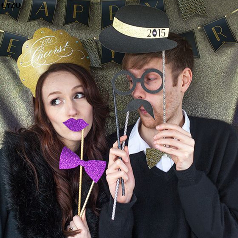 1 set Party Photo Booth Funny Heart Tie Moustache Birthday Party Supplies Wedding Decoration Photo Props