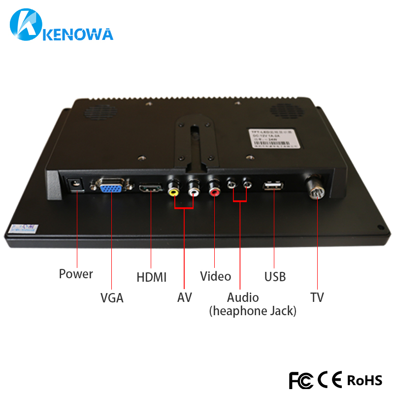 3. Two way AV input, one TV input, one VGA input, one HDMI input,one USB port and 2 built-in speakers.