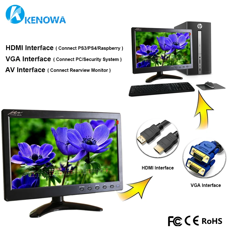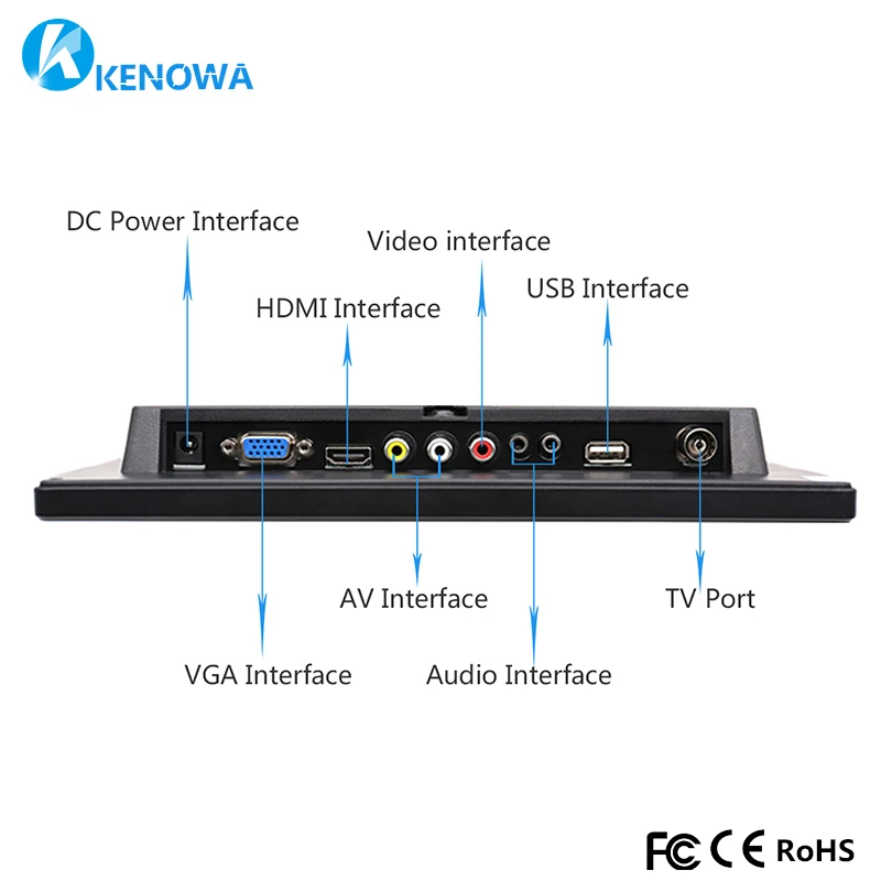 3. Two way AV input, one TV input, one VGA input, one HDMI input,one USB port and 2 built-in speakers.