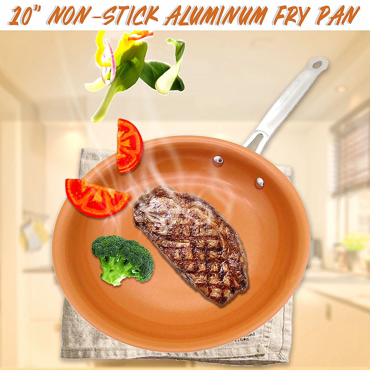 Name: 10″ Non-stick Aluminum Fry Pan Flat Frying Pan Ceramic Coating Copper Color
