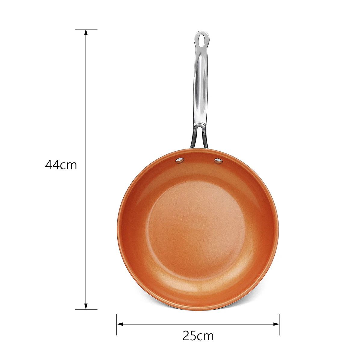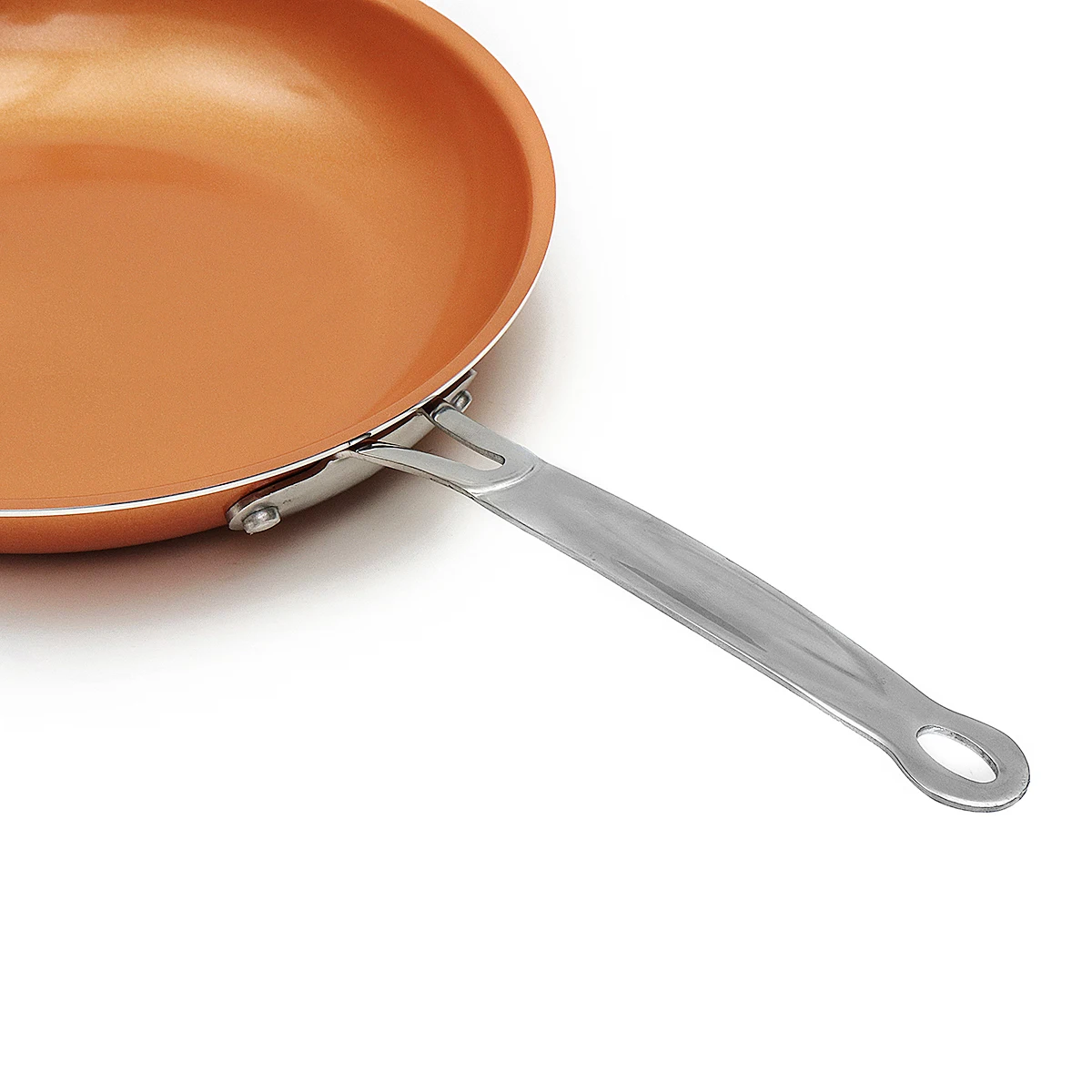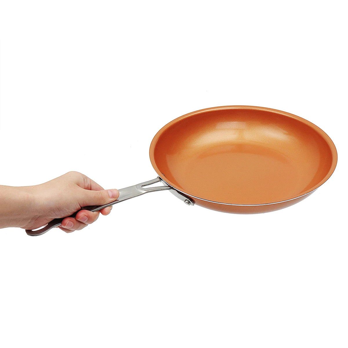 Name: 10″ Non-stick Aluminum Fry Pan Flat Frying Pan Ceramic Coating Copper Color