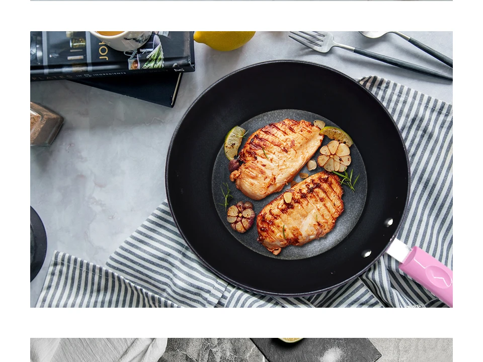 1.The pan inner coated with Eco-friendly ceramic materials,non-stick and easy to clean.