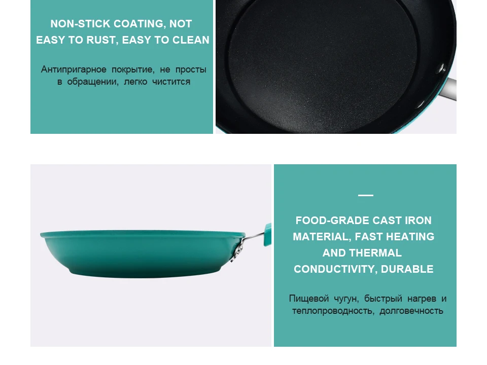 4.High quality iron materials, fast thermal conductivity, uniform heating,energy saving and durable.