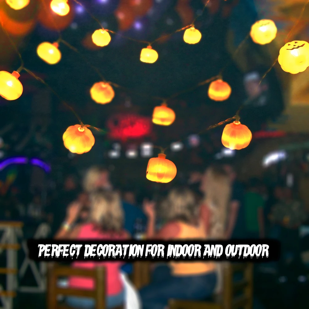 Unique decorative string light with pumpkin face style bulb, warm white lighting, add warm and charming atmosphere to your gardens, patio, lawn, porch, gate, yard, etc.