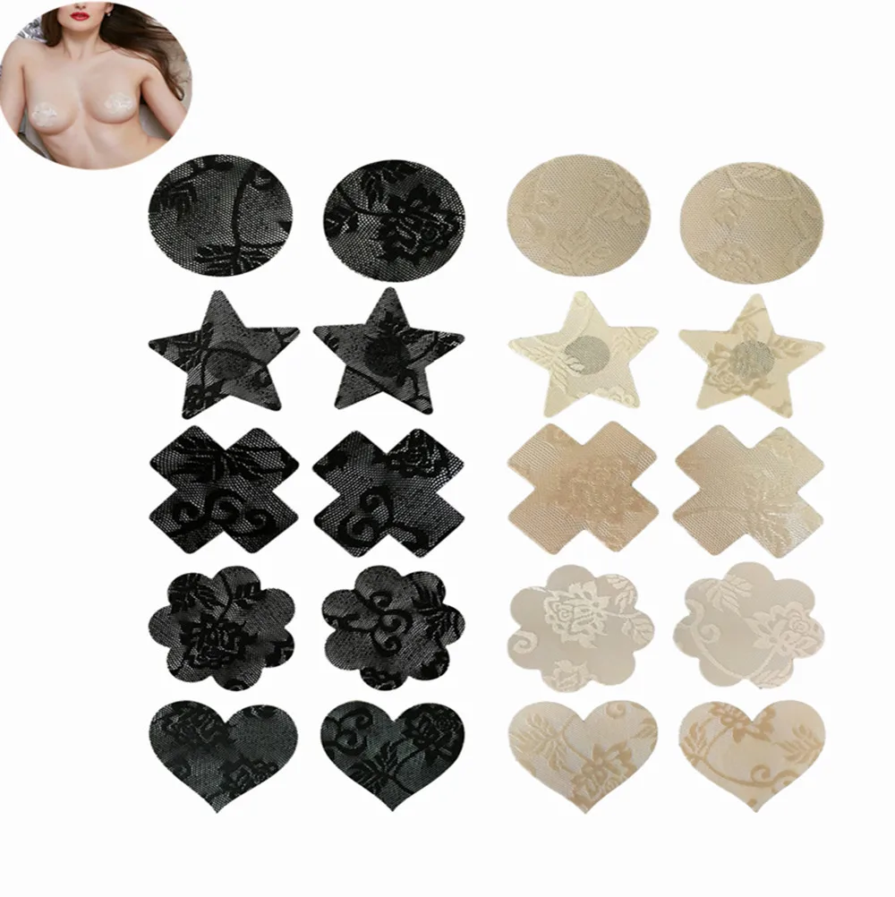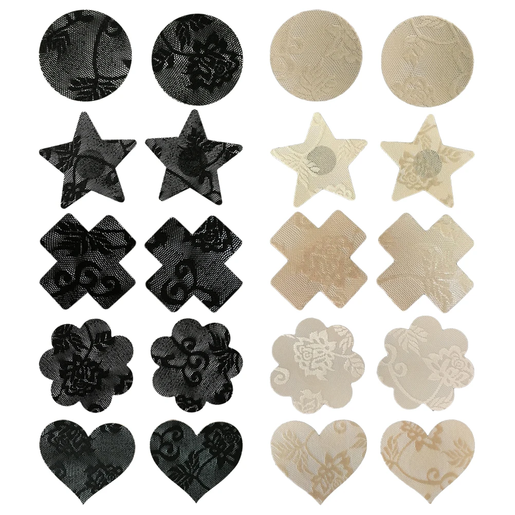 10 Pairs Disposable Adhesive Breast Pasties Diverse-Design Nipple Stickers Cover Invisible Breast Concealer Pad for Women