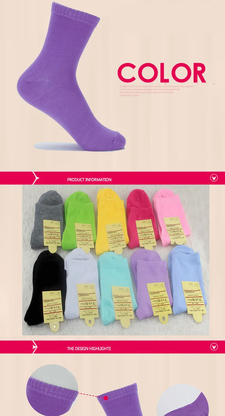 10 Pairs Fashion New Colorful Design Women’s Socks High Quality Spring Summer Winter Style Solid Color Sock Free Shipping