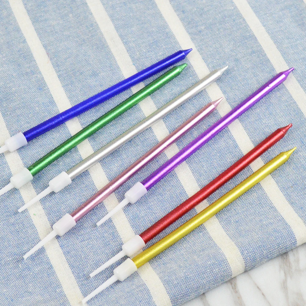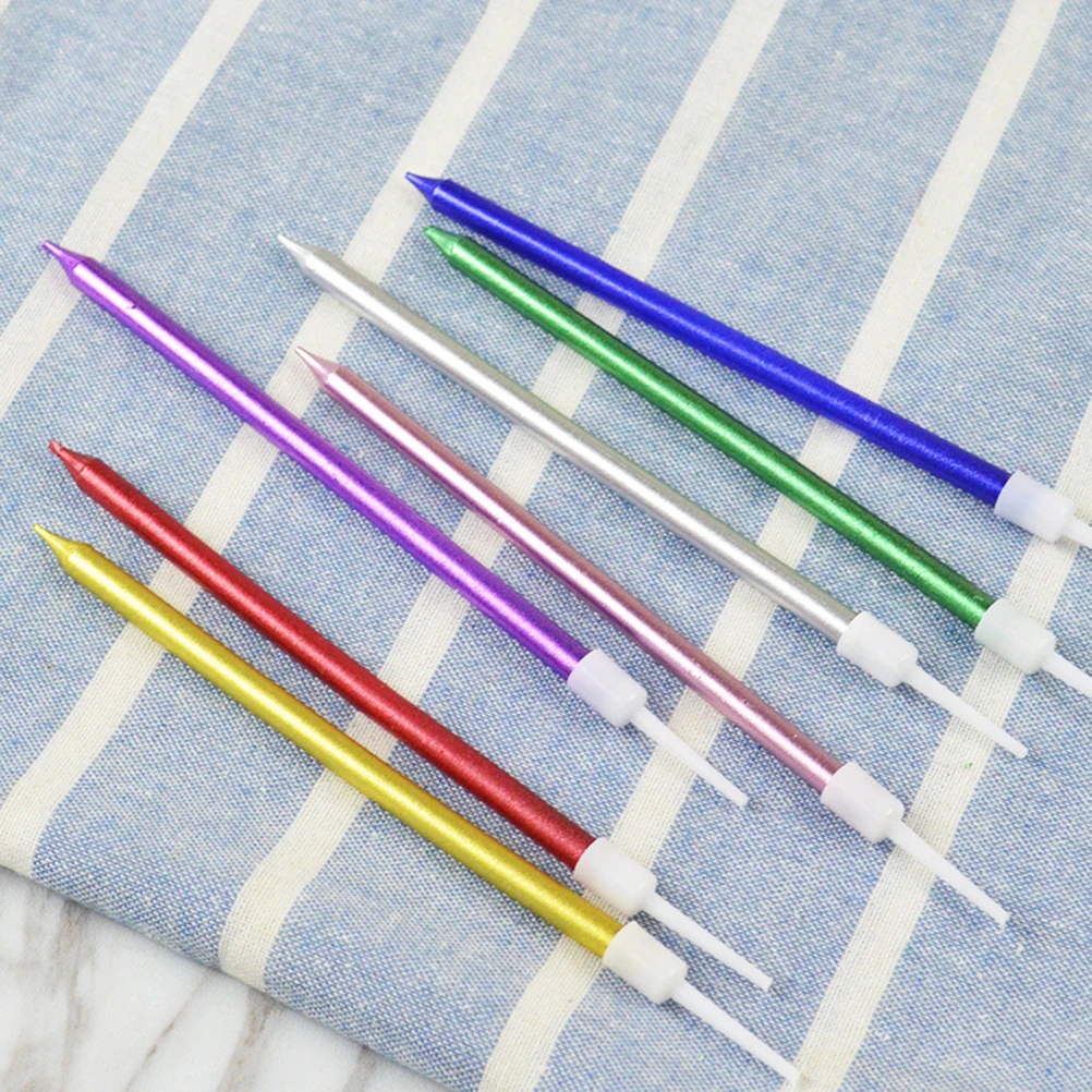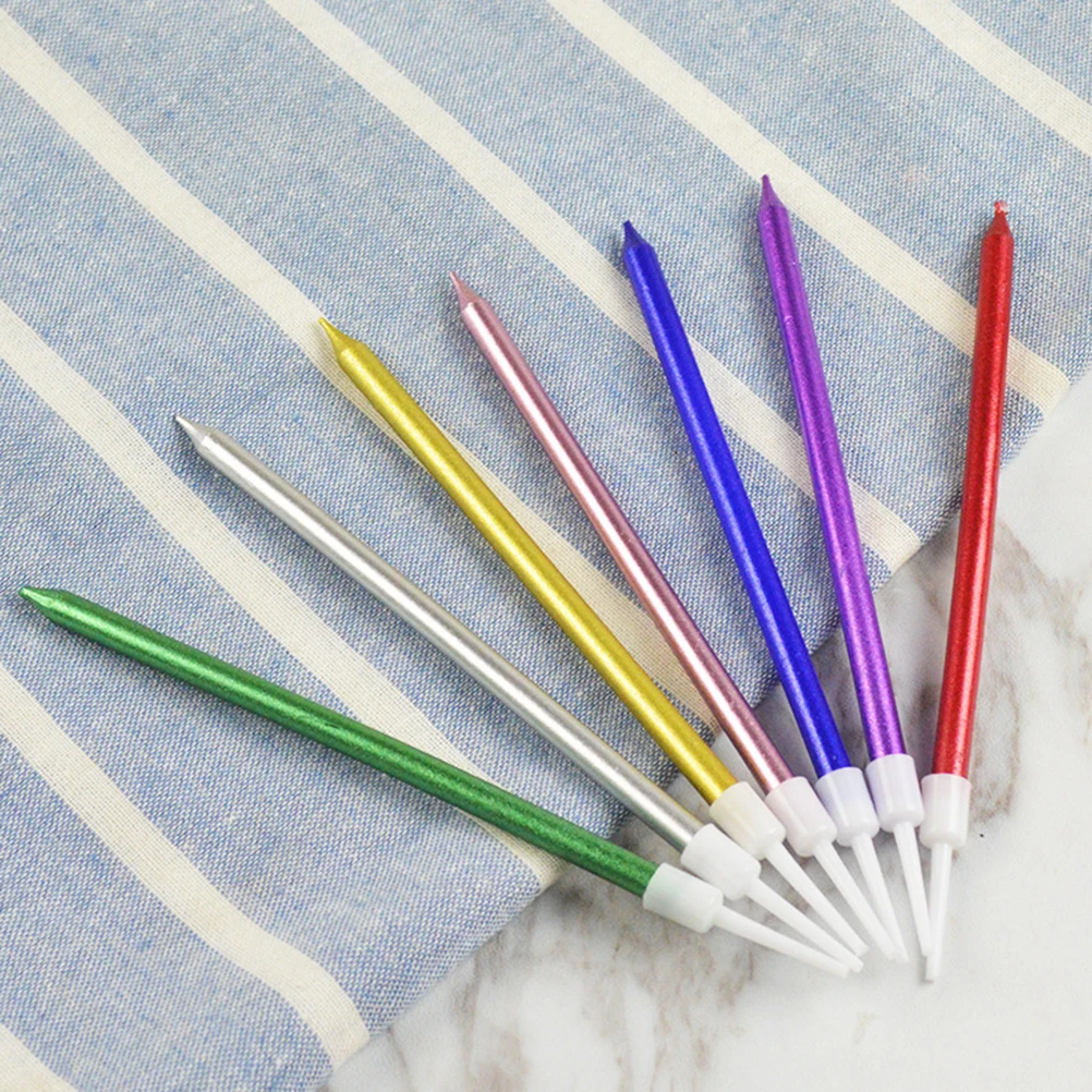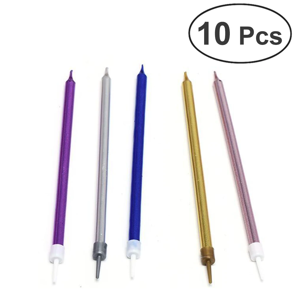 10 Pcs Electroplate Candle Party Long Thin Cake Candle Pencil Shaped for Birthday Wedding (Mixed Color)
