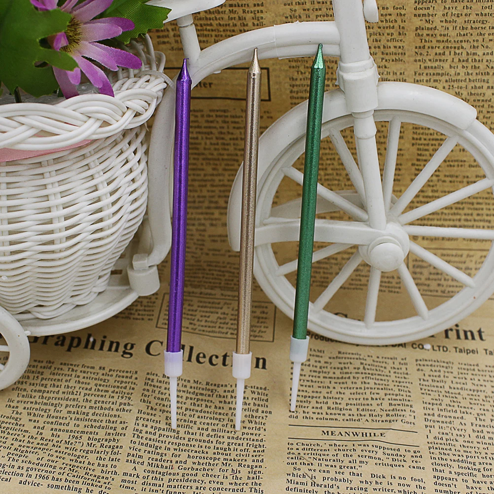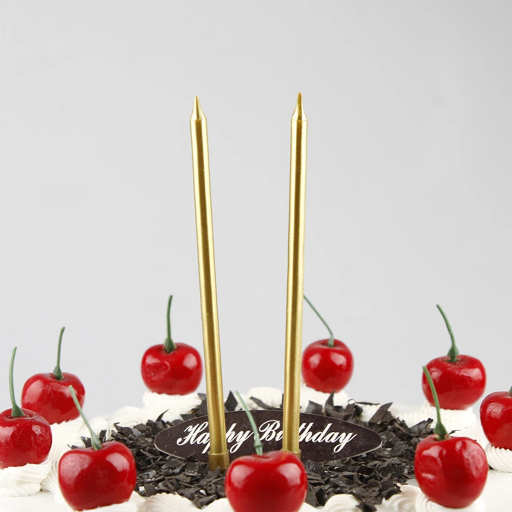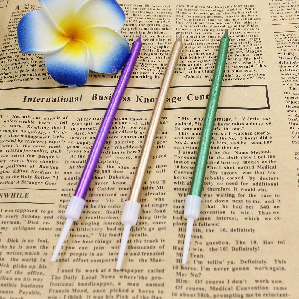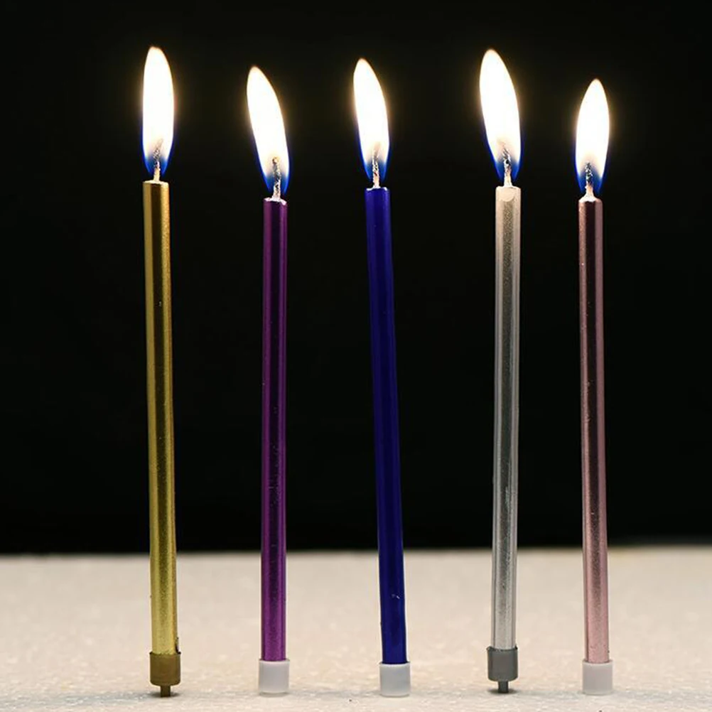 10 Pcs Electroplate Candle Party Long Thin Cake Candle Pencil Shaped for Birthday Wedding (Mixed Color)