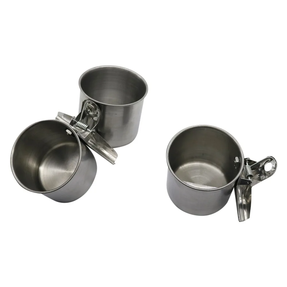 10 Pcs High Quality Stainless Steel Food Water Feeding Bird Single Cups With Clip Parrot Cage Stand Bird Feeder Supplies