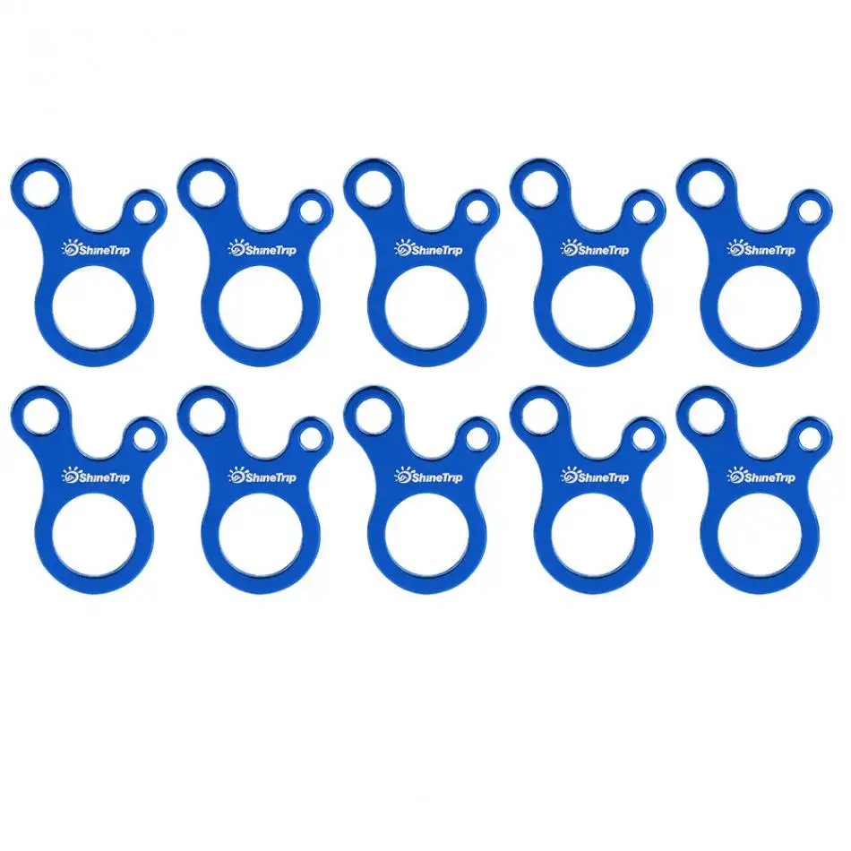 These line runners are great for outdoor camping, hiking, backpacking, picnic, shelter shade canopy and so on. 3 holes special design, easy to install and adjust the rope, lock the cord and prevent it from slipping off. The unique shape can be also used as a keychain. It is made of aluminium alloy, lightweight and durable, and easy to carry.