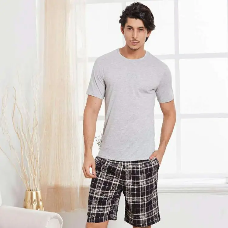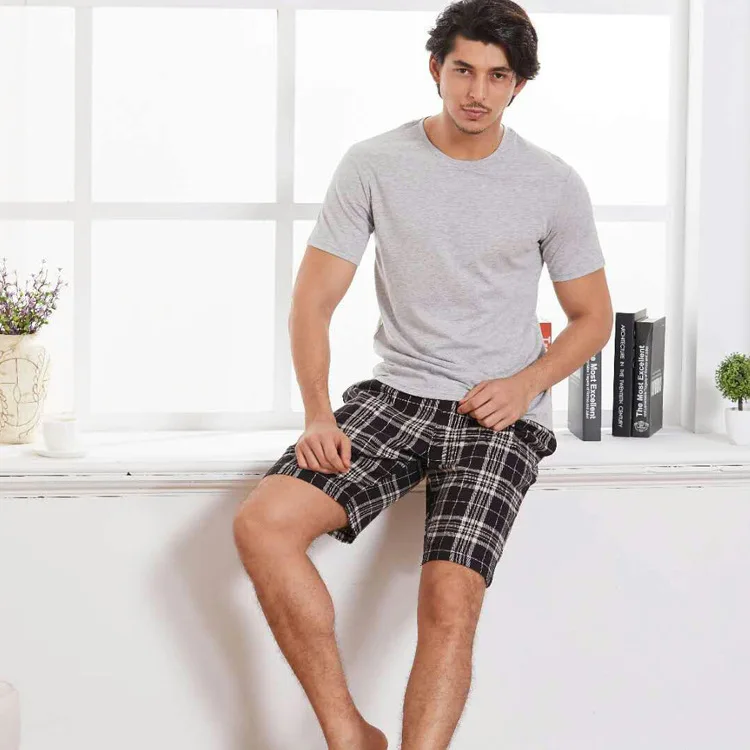 100% cotton men pajamas short Summer Pajamas sets men casual plaid pijamas for male short sleeves homewear pyjamas men