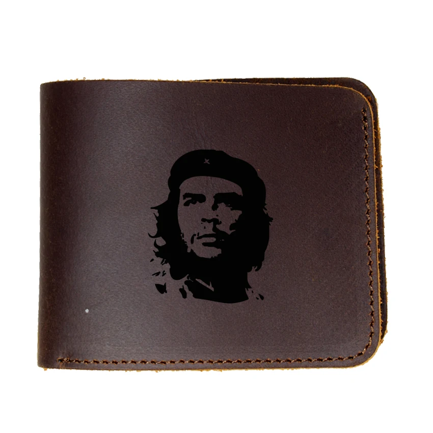 100% Cowhide Leather Wallet Engraved Picture che guevara Purse Male Can Custom Name Gift Men Wallet Small Purses