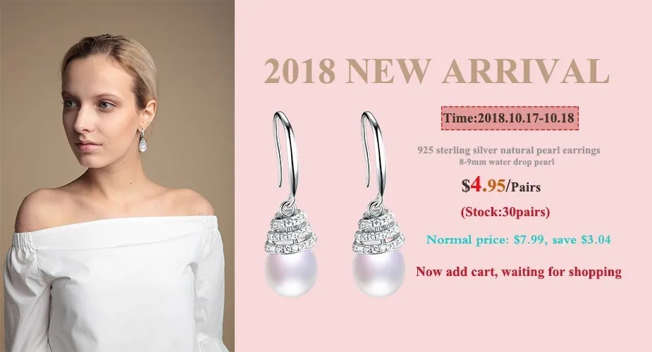 100% genuine freshwater pink pearl earrings fashion jewelry silver stud earrings for women super deal with gift box 2018 new