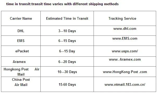 Packages from our warehouse in China will be shipped by ePacket or EMS depending on the weight and size of the product. Packages shipped from our US warehouse are shipped through USPS.