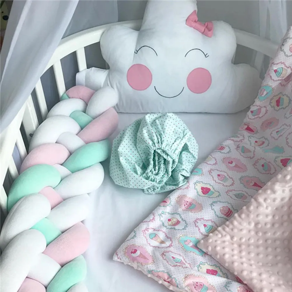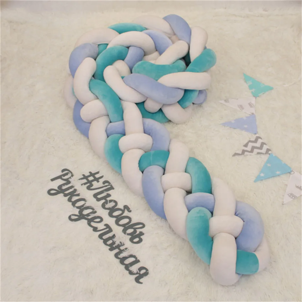 100CM 200CM Newborn Baby Bed Bumper Weaving Knot Design Newborn Crib Pad Protection Baby Room Decoration For Kids Bedding