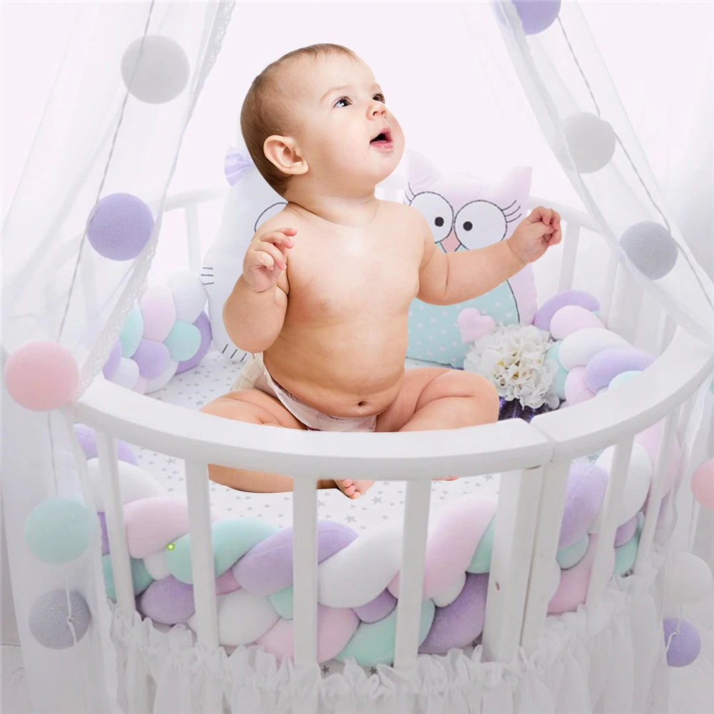 1 * Braided Long Knotted Ball Crib Guardrail Bumper Anti-Collision Protective Baby Bed Protector Rope