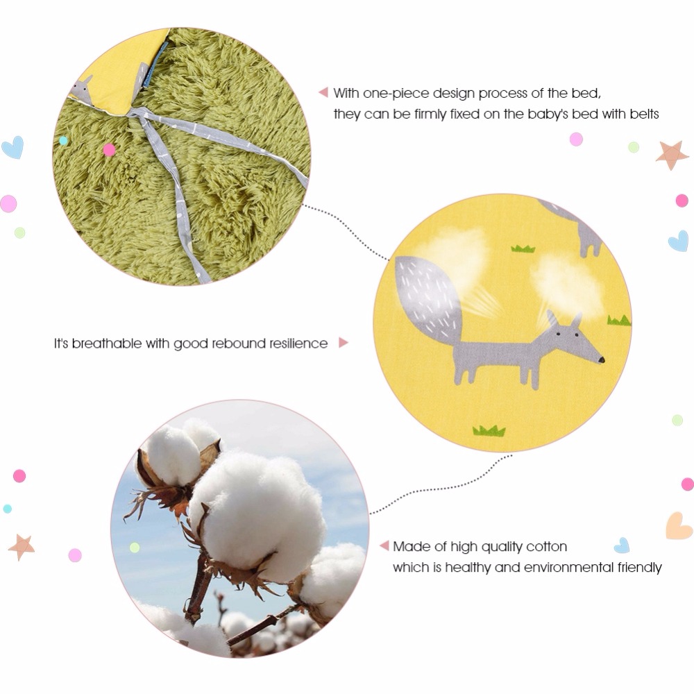 Our baby crib sheet is made of high quality cotton which is healthy and environmental friendly with no pollution. It is breathable and has good rebound resilience, soft and comfortable for your kids. With thick filling, it can provide soft cushioning when the baby turns over and prevent collision effectively. Multi-angle protection surroundings can prevent risk of the baby being stuck.
