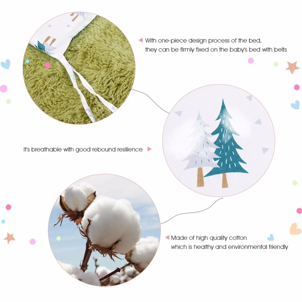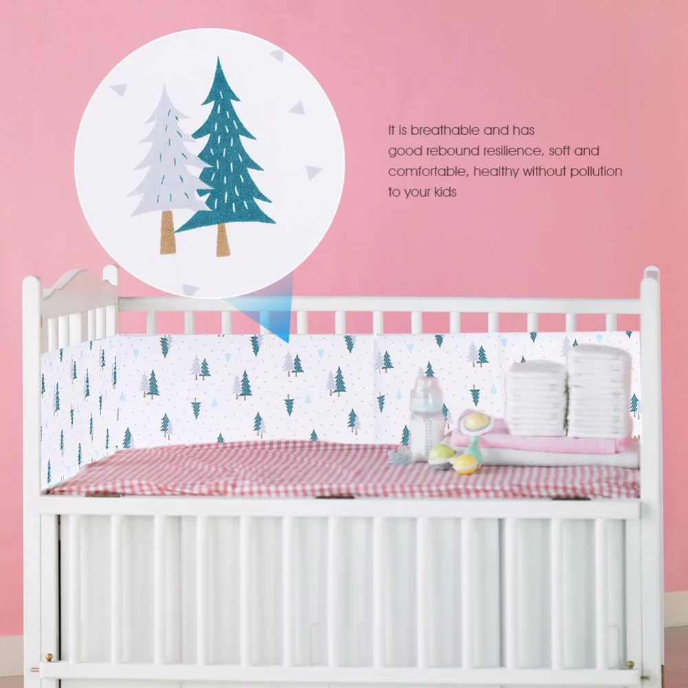 Our baby crib sheet is made of high quality cotton which is healthy and environmental friendly with no pollution. It is breathable and has good rebound resilience, soft and comfortable for your kids. With thick filling, it can provide soft cushioning when the baby turns over and prevent collision effectively. Multi-angle protection surroundings can prevent risk of the baby being stuck.